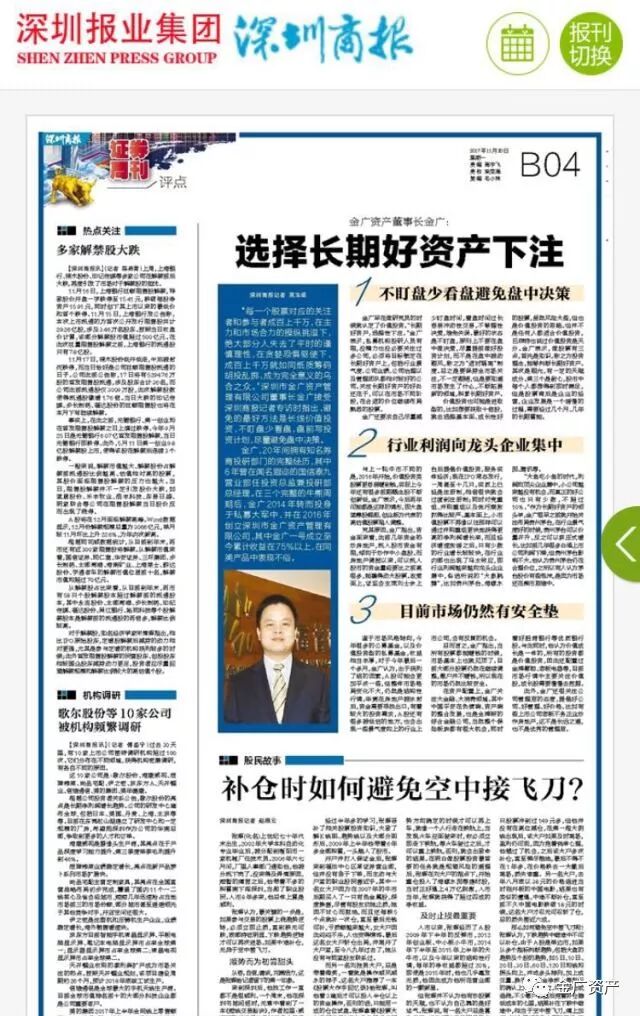 深圳商报专访金广:选择长期好资产下注